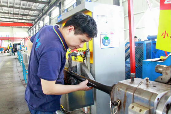 與其他組裝式的產(chǎn)品不同,后期檢查出現(xiàn)質量問題,可以拆開重裝或更換零件,電纜的生產(chǎn)制造任何一個部件或工藝工序沒有達標,后期是無法挽回和彌補的。因此,電纜生產(chǎn)線上的每一個操作者都是關鍵人物。作為機組組長的劉學文,深知自己肩上的重任,一旦進入車間,他便絲毫不敢懈怠,總是在生產(chǎn)線之間來回走動,反復查看機器設備的運轉情況、第一時間查看電纜成品質量,快速發(fā)現(xiàn)問題,解決問題,避免不良品流入下一道工序,不僅保障了電纜質量,而且有效提高了電纜的生產(chǎn)效率。