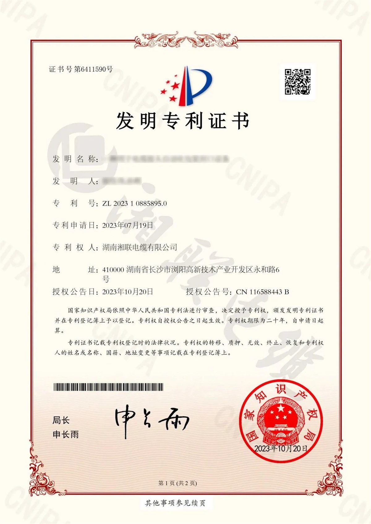 點(diǎn)贊!湘聯(lián)電纜再獲六項(xiàng)國家專利