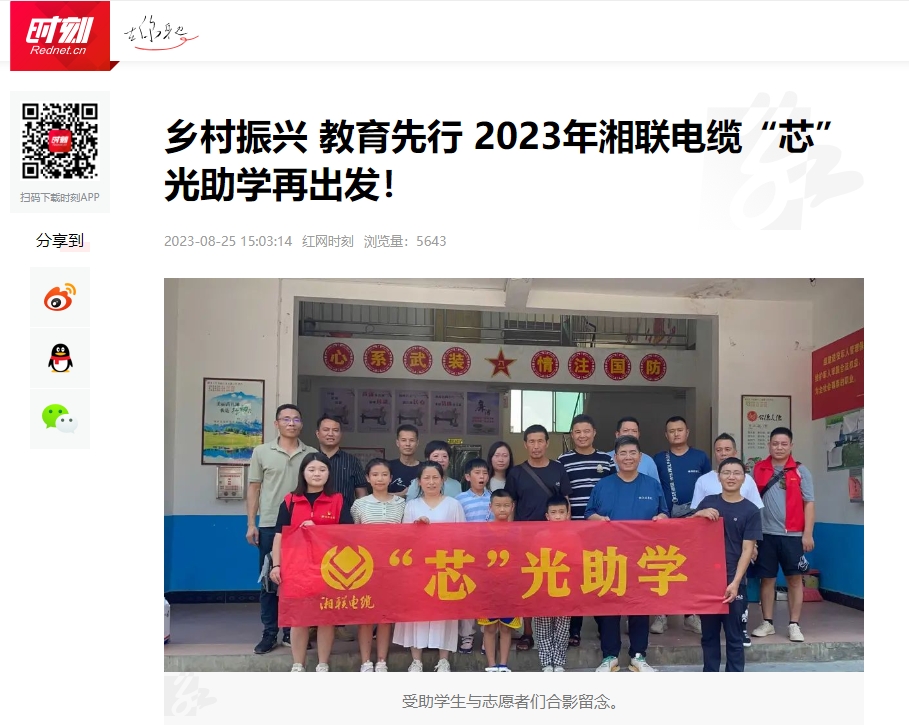 2023年,為增強(qiáng)員工的思想道德建設(shè),湘聯(lián)電纜有序開(kāi)展公益助學(xué)、懷念袁隆平院士、關(guān)愛(ài)老人等活動(dòng),多次被瀟湘晨報(bào)、湖北新聞、紅網(wǎng)、澎湃新聞等知名媒體推薦報(bào)道。