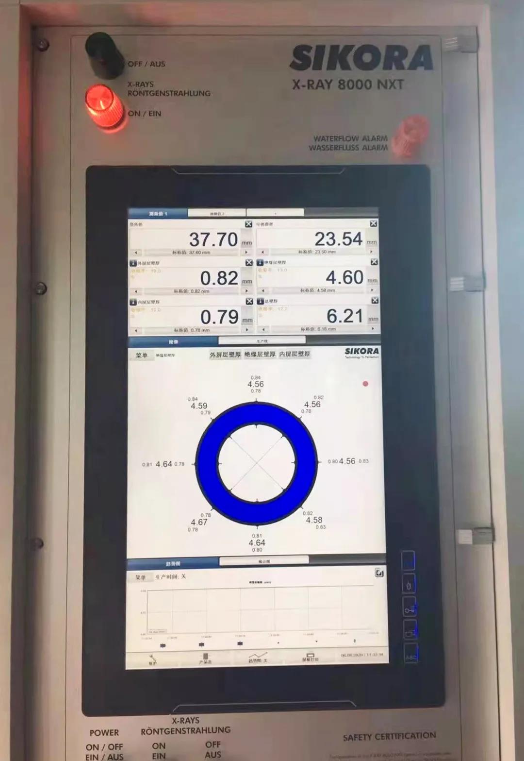 “嚴把質量關,產品質量有保證?!惫具€大力引進德國進口西科拉交聯管內電纜偏心壁厚分層辨析系統(tǒng),在每一個掃描器上配備新一代的雙接收器的測偏儀,保證儀器在任何激烈電纜抖動情況下也能進行精確可靠的檢測,并采用全新的門控技術控制X射線的發(fā)射,X射線的轉換效率更高,操作溫度更低,從而保護射線管,生產過程實時監(jiān)控中壓電纜內屏,絕緣,外屏三層擠出時采集八點厚度,精準實時監(jiān)控絕緣外徑,從而提供高標準產品。