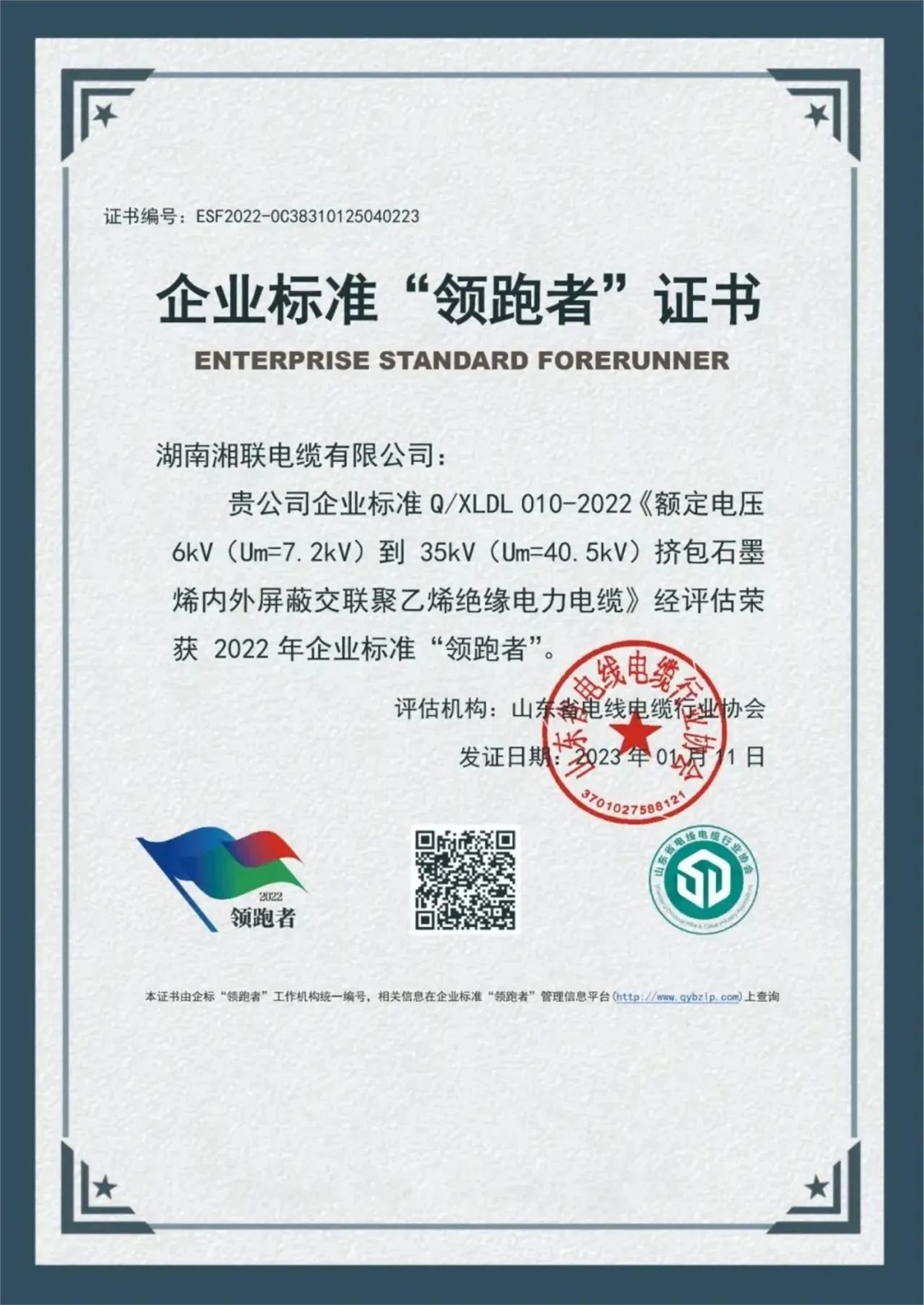 自成立以來,湘聯(lián)電纜以“質量是發(fā)展的基石,是客戶信任的唯一理由”為指導,將產(chǎn)品質量視為企業(yè)生命線,不斷引進國內一流的電線電纜生產(chǎn)和檢測設備,以科學的經(jīng)營管理理念,組建實力雄厚的技術研發(fā)和企業(yè)管理團隊,建立高標準質量管理體系,對生產(chǎn)全過程實現(xiàn)智能化數(shù)字化管理,公司產(chǎn)品先后通過國家強制性產(chǎn)品認證(CCC認證),榮獲企業(yè)標準“領跑者”等榮譽稱號,獲得用戶的廣泛認可。